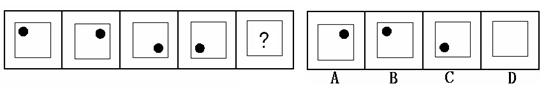 (答案:B。黑點(diǎn)在正方形中順時(shí)針移動(dòng)。在第5個(gè)圖形中,應(yīng)該正好移動(dòng)到左上角。)