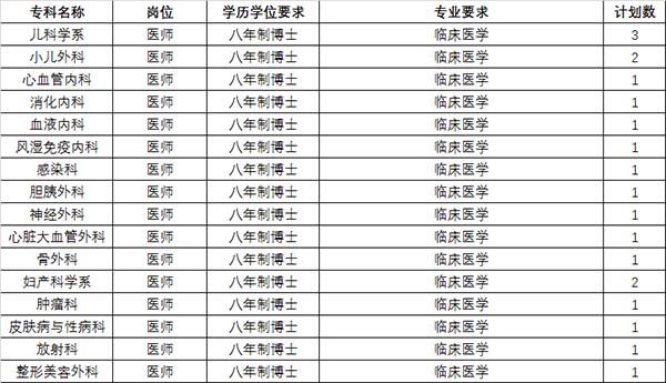 2、學歷要求:“雙”建設高校統(tǒng)招應屆臨床醫(yī)學八年制博士。