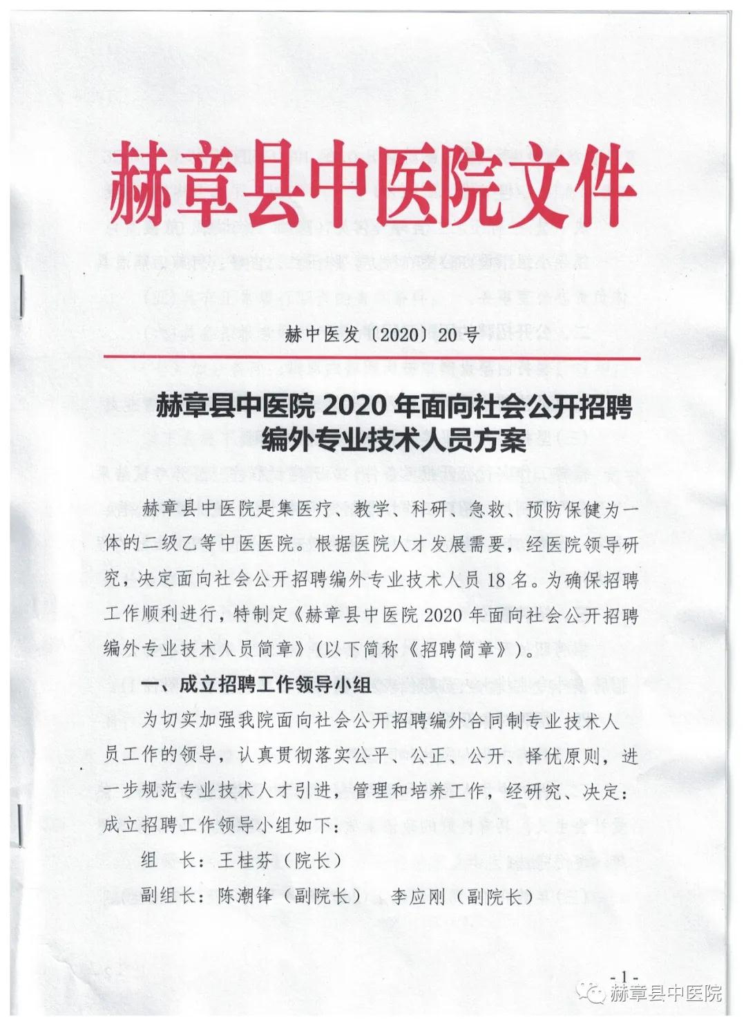2020赫章縣中醫(yī)院面向社會(huì)公開招聘編外專業(yè)技術(shù)人員18人方案