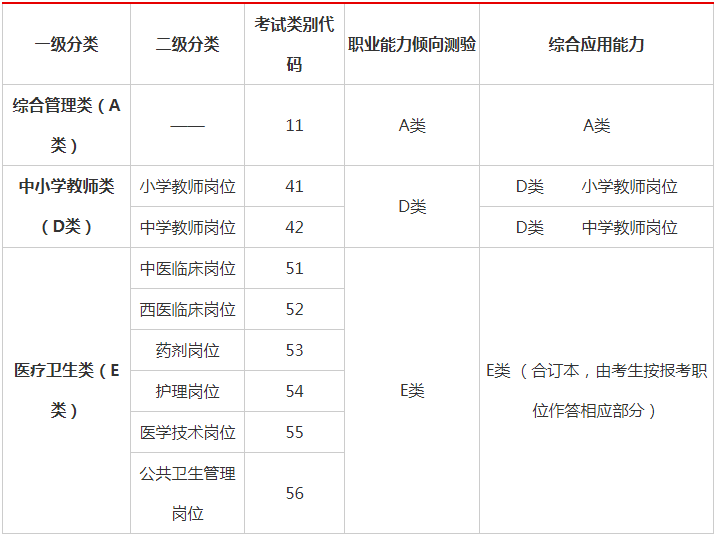 綜合管理類、中小學教師類、醫(yī)療衛(wèi)生類《職業(yè)能力傾向測驗》和《綜合應用能力》滿分均為150分,筆試總分300分。衛(wèi)生類綜合應用能力為合訂本,由考生按報考職位作答相應部分。