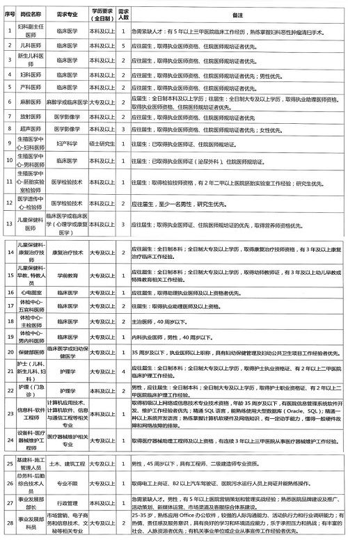 因醫(yī)院業(yè)務(wù)發(fā)展需要,現(xiàn)面向社會各界和全國各高等醫(yī)學(xué)院校誠招英才。竭誠歡迎各位英才和畢業(yè)生加入梅州市婦女兒童醫(yī)院大家庭,攜手同行,共創(chuàng)未來!