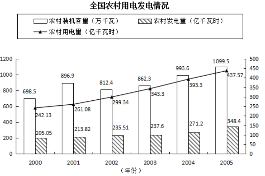 2.根據(jù)上圖,下列關(guān)于我國農(nóng)村用電發(fā)電情況的表述,錯(cuò)誤的一項(xiàng)是( )。