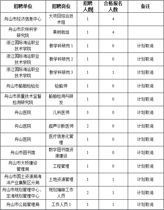 2015浙江舟山群島新區(qū)人才儲(chǔ)備中心招聘延長(zhǎng)報(bào)名期限崗位報(bào)名情況及崗位計(jì)劃取消通知