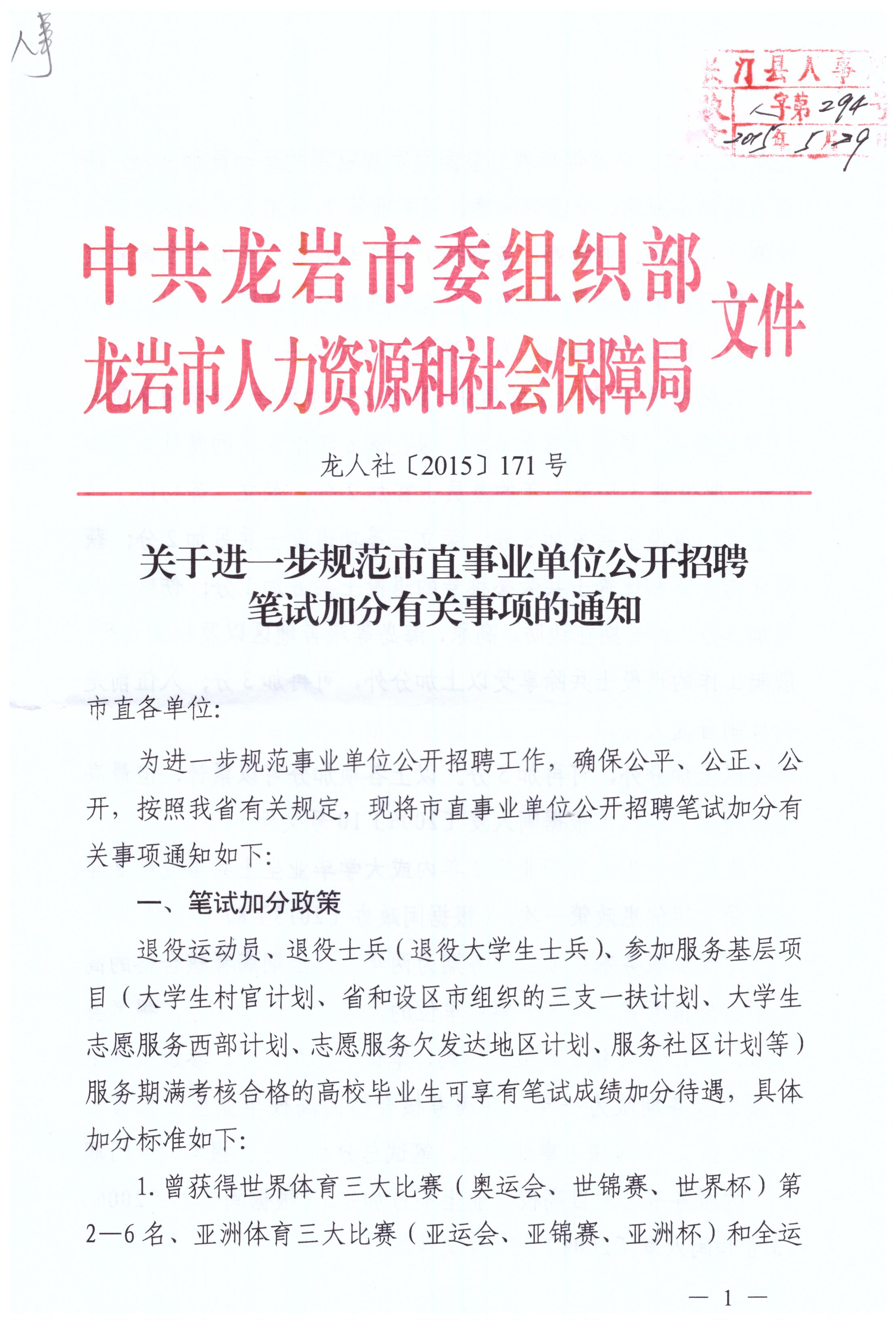 2015福建長(zhǎng)汀縣市直事業(yè)單位招聘筆試加分有關(guān)事項(xiàng)通知