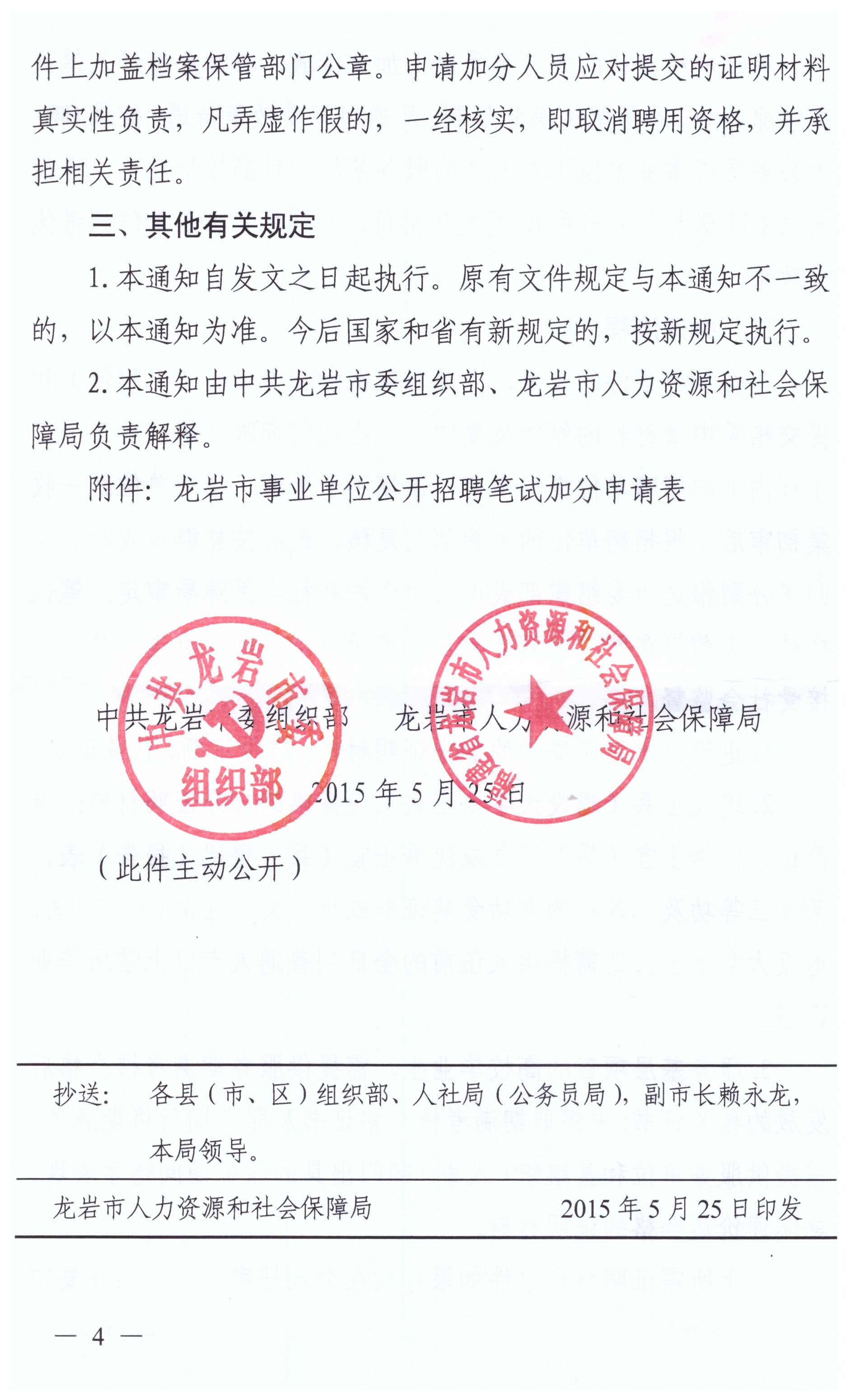 2015福建長汀縣市直事業(yè)單位招聘筆試加分有關(guān)事項(xiàng)通知