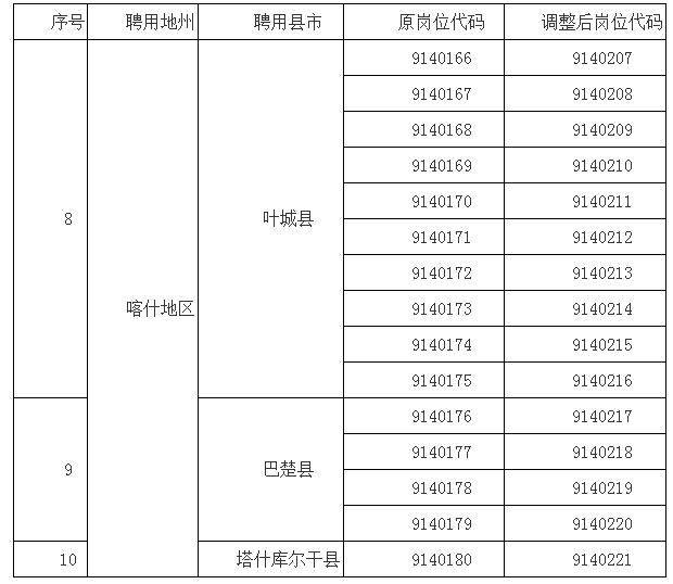 具體崗位代碼調(diào)整情況見(jiàn)下表: