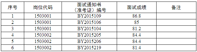 一、根據(jù)《公告》規(guī)定,按照招聘計(jì)劃數(shù)與面試成績(jī)從到低分1:3的比例確定筆試對(duì)象,根據(jù)面試結(jié)果,確定以下考生進(jìn)入筆試。