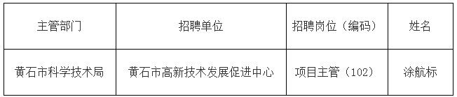 根據(jù)《黃石市2015年度事業(yè)單位公開招聘工作人員公告》規(guī)定,黃石市高新技術(shù)發(fā)展促進中心研究生崗位(崗位編碼102)經(jīng)面試、體檢、考核等程序,現(xiàn)將擬聘用對象予以公示,請考生繼續(xù)關(guān)注此次公開招聘相關(guān)信息。