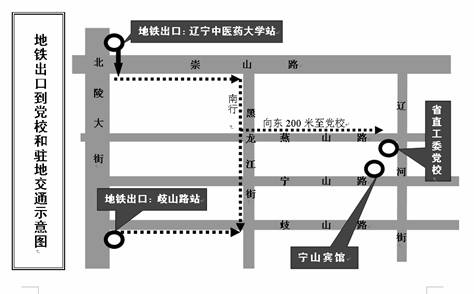 乘地鐵,可在遼寧中醫(yī)大學站下車,步行兩站到省直屬機關工委黨校。