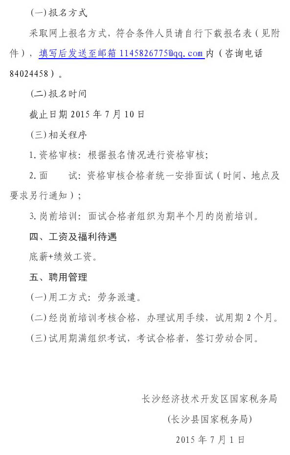 2015湖南長沙經(jīng)濟(jì)技術(shù)開發(fā)區(qū)國家稅務(wù)局招聘窗口人員公告【招25人】