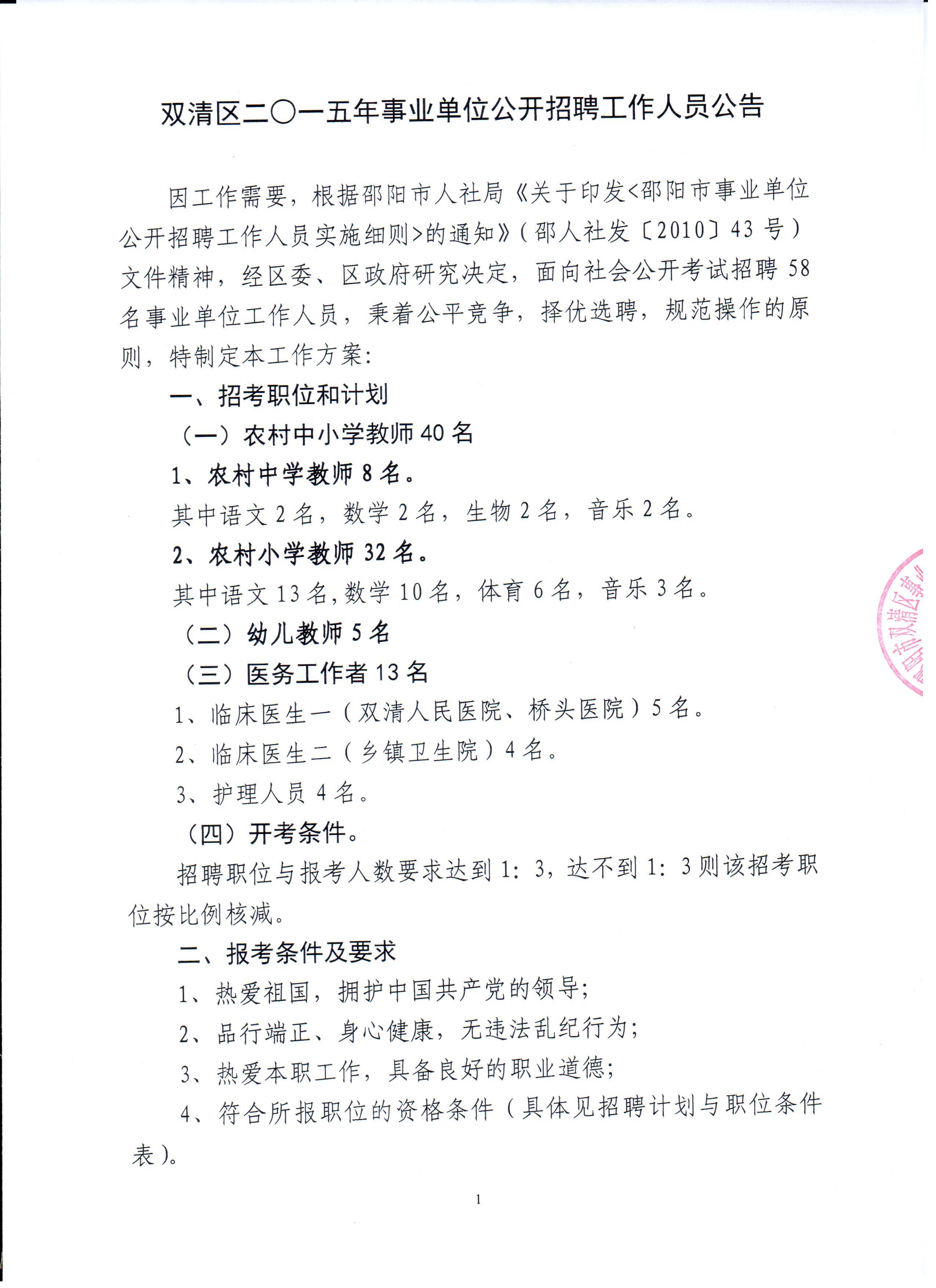 2015湖南雙清區(qū)事業(yè)單位招聘公告【58人】