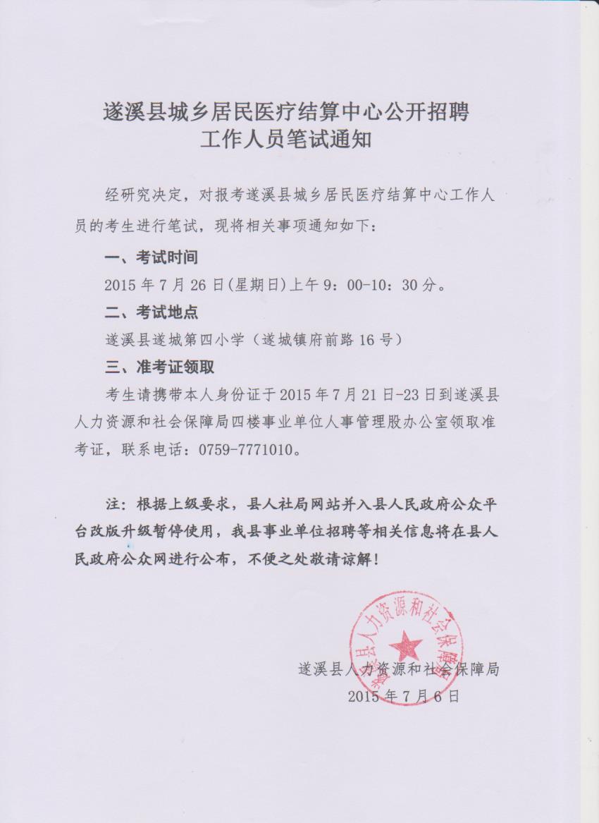 2015廣東遂溪縣城鄉(xiāng)居民醫(yī)療結算中心招聘筆試通知