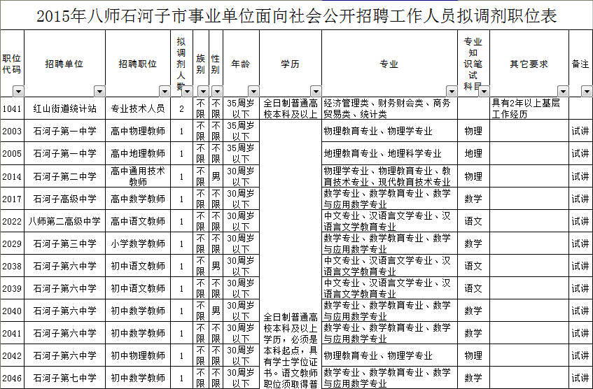 原標(biāo)題:2015年八師石河子市事業(yè)單位面向社會(huì)公開招聘工作人員調(diào)劑工作通知