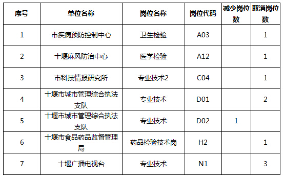 根據(jù)十堰市市直事業(yè)單位公開招聘工作人員公告,因部分崗位報(bào)名人數(shù)達(dá)不到1:3的比例,現(xiàn)將崗位減少及取消情況公布如下: