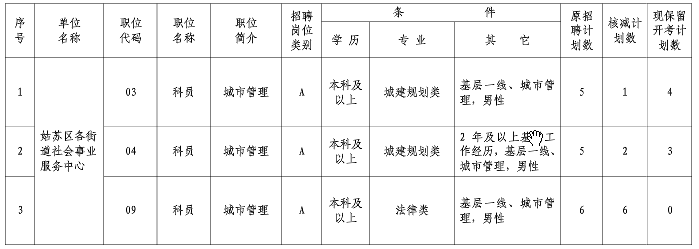 2015江蘇姑蘇區(qū)各街道社事中心招聘核減計(jì)劃數(shù)公告