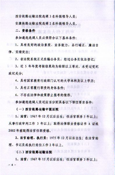 2015陜西省鐵路系統(tǒng)遴選選調(diào)審判人員公告【招60人】