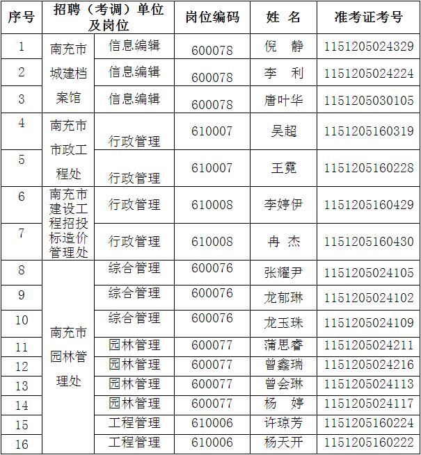 根據(jù)《南充市市屬事業(yè)單位2015年公開招聘工作人員公告》和《南充市市屬事業(yè)單位2015年公開考調(diào)工作人員公告》的規(guī)定,現(xiàn)將南充市住房和城鄉(xiāng)建設(shè)局公開招聘(考調(diào))工作人員面試有關(guān)事項公告如下: