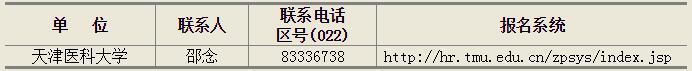 應(yīng)聘人員請(qǐng)登陸天津醫(yī)科大學(xué)網(wǎng)站(www.tmu.edu.cn)“二?一六年公開招聘”專欄,進(jìn)入指定報(bào)名系統(tǒng),按照系統(tǒng)提示提交報(bào)名材料。具體聯(lián)系方式如下: