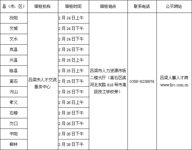 2015山西呂梁市政府購買基層公共服務崗位資格審核通知