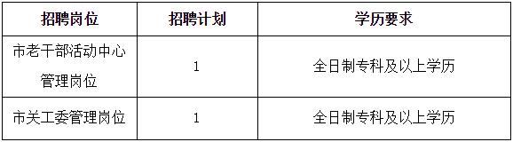 因工作需要,市委老干部局?jǐn)M招聘2名工作人員。現(xiàn)將有關(guān)事項(xiàng)公告如下: