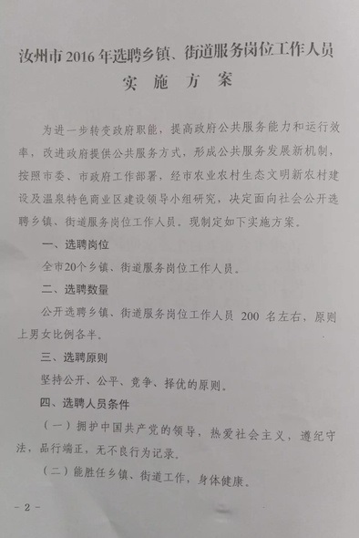 2016河南平頂山汝州市選聘鄉(xiāng)鎮(zhèn)、街道服務(wù)崗位人員200名公告