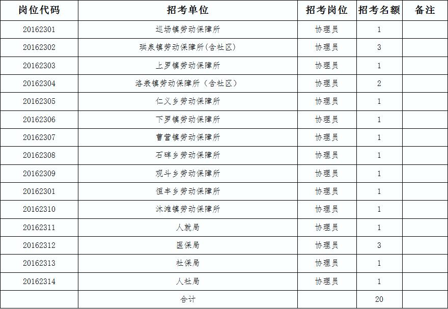 各鎮(zhèn)(鄉(xiāng))就業(yè)和社會公共服務機構協(xié)理員共20名。珙縣公開招考基層就業(yè)和社會公共服務機構協(xié)理員崗位表: