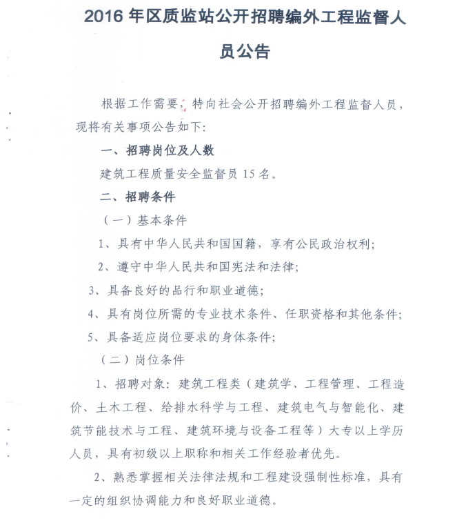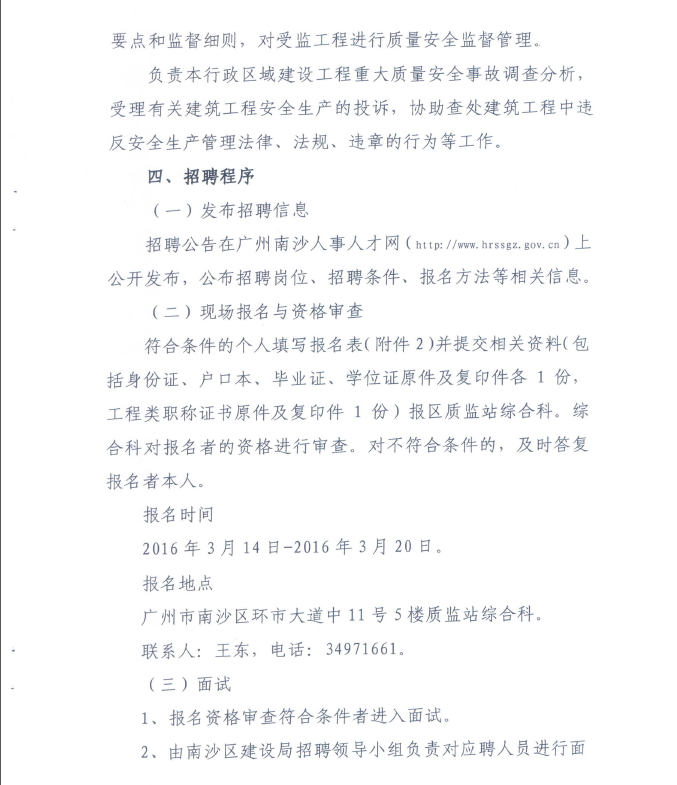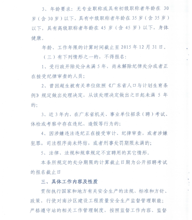 2016廣東南沙區(qū)質(zhì)監(jiān)站招聘工程監(jiān)督員公告【招15名】