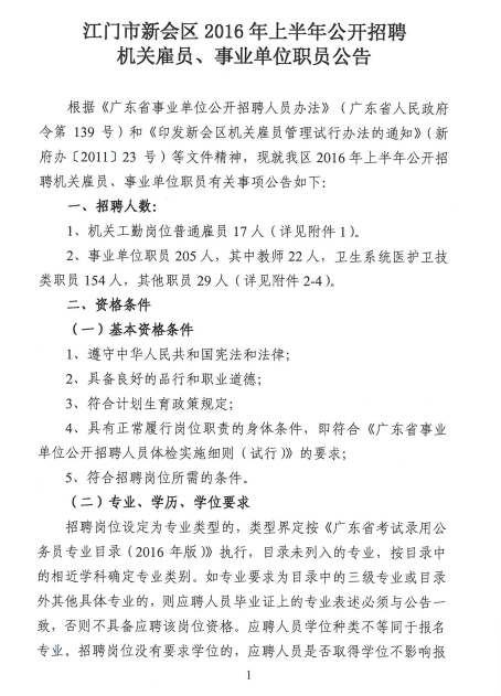 2016上半年廣東江門市新會區(qū)招聘機關(guān)雇員、事業(yè)單位職員公告【222人】