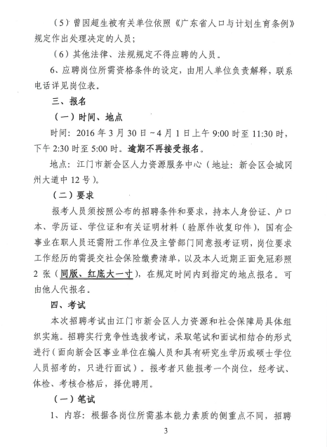 2016上半年廣東江門市新會區(qū)招聘機關(guān)雇員、事業(yè)單位職員公告【222人】