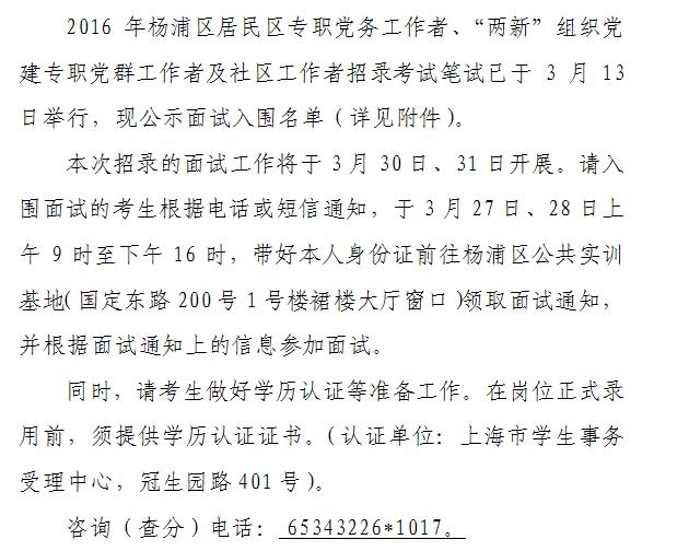 2016上海楊浦區(qū)居民區(qū)專職黨務、“兩新”組織黨建專職黨群及社區(qū)面試公告