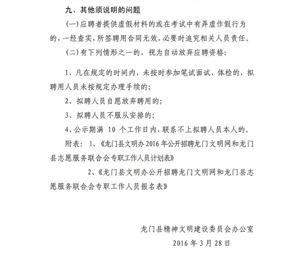 2016廣東龍門縣文明辦招聘政府購買服務(wù)人員4人公告
