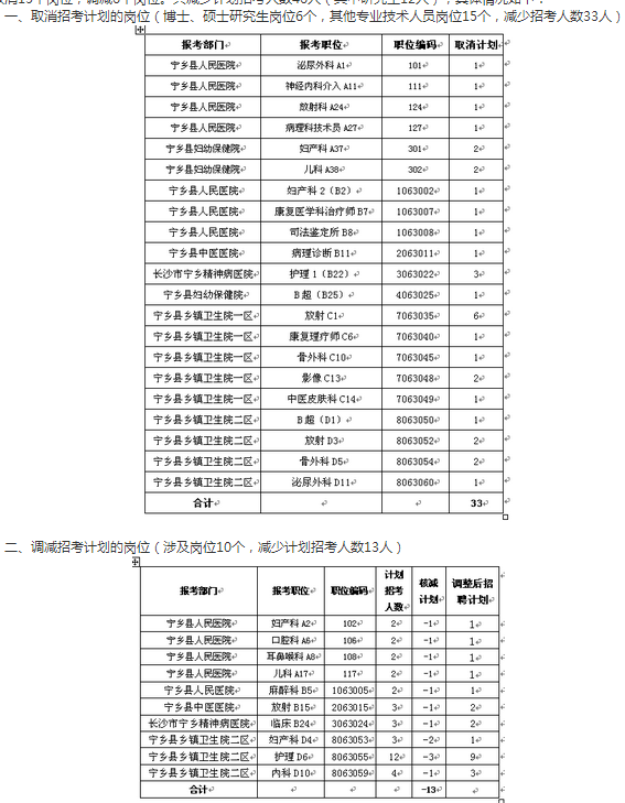 2016湖南寧鄉(xiāng)縣衛(wèi)計(jì)系統(tǒng)招聘計(jì)劃調(diào)減及有關(guān)事項(xiàng)通知