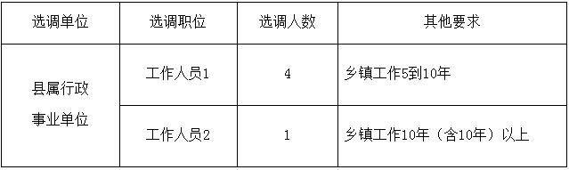 為充分調動鄉(xiāng)鎮(zhèn)干部的工作積極性,探索建立鄉(xiāng)鎮(zhèn)機關事業(yè)工作人員向縣屬部門正常流動的工作機制,經(jīng)研究,決定開展2016年縣屬部門部分職位面向鄉(xiāng)鎮(zhèn)公開選調工作,現(xiàn)將有關事項公告如下: