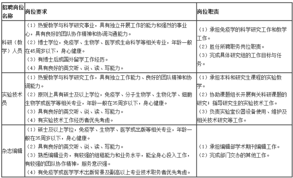 免疫所因工作需要,根據(jù)《上海市事業(yè)單位公開招聘人員暫行辦法》(滬人社專發(fā)〔2009〕45號)規(guī)定,按照公開、平等、競爭、擇優(yōu)的原則,現(xiàn)面向社會公開招聘工作人員,公告如下: