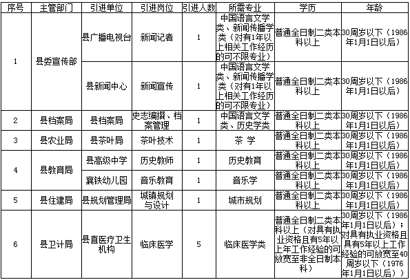 為大力實施人才興縣戰(zhàn)略,根據(jù)《縣委辦公室 縣政府辦公室關(guān)于印發(fā)急需緊缺人才引進管理暫行辦法(五辦文〔2015〕25號)》文件精神,經(jīng)縣委縣政府同意,現(xiàn)面向社會公開引進12名急需緊缺人才?,F(xiàn)將有關(guān)事項公告如下: