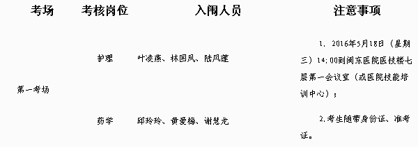 閩東醫(yī)院2016年上半年公開(kāi)招聘工作人員專業(yè)技能考核為第一組0032護(hù)理,第二組0033藥學(xué),第一組、第二組均在第一考場(chǎng)。專業(yè)技能考核為專業(yè)技能操作1題,相關(guān)專業(yè)知識(shí)測(cè)試2題。