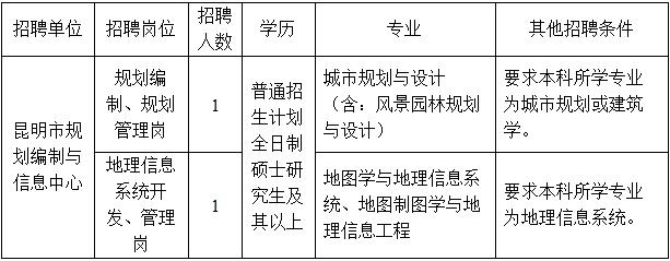 2016云南昆明市規(guī)劃編制與信息中心招聘公告【招2人】