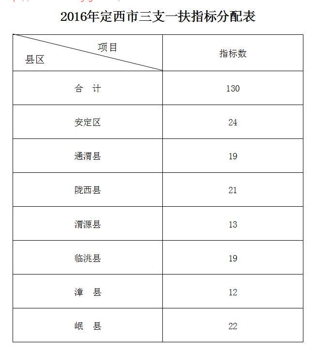 2016甘肅定西市普通高校畢業(yè)生三支一扶計劃指標(biāo)通知