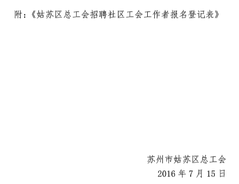 2016江蘇姑蘇區(qū)總工會(huì)招聘社區(qū)工會(huì)工作者公告【招1人】