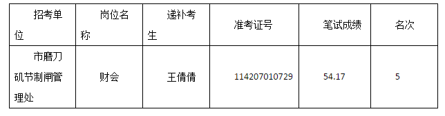 鄂州市水務(wù)系統(tǒng)2016年事業(yè)單位公開招聘資格復(fù)審,因第4名考生許瑩放棄資格復(fù)審,根據(jù)《鄂州市事業(yè)單位2016年度公開招聘工作人員公告》有關(guān)規(guī)定,在報考同一崗位考生中按照筆試成績從到低分依次遞補的原則,遞補以下考生為資格復(fù)審人選:
