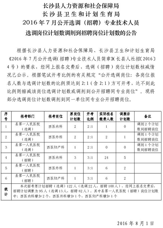 2016年7月湖南長(zhǎng)沙縣衛(wèi)計(jì)局選調(diào)專業(yè)技術(shù)人員選調(diào)崗位調(diào)劑到招聘崗位公告