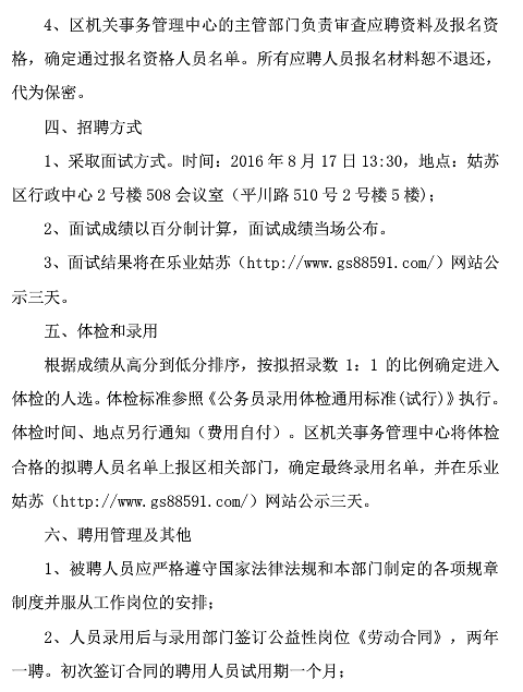 原標(biāo)題:2016年姑蘇區(qū)機(jī)關(guān)事務(wù)管理中心公開招聘公益性崗位工作人員簡章