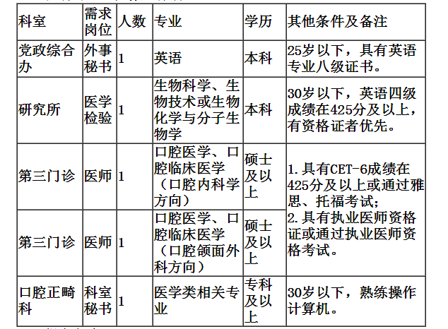 昆明醫(yī)科大學(xué)附屬口腔醫(yī)院(云南省口腔醫(yī)院)是云南省規(guī)模、設(shè)備、技術(shù)力量最雄厚的三級(jí)口腔??漆t(yī)院,因醫(yī)療業(yè)務(wù)發(fā)展需要,特向社會(huì)誠(chéng)聘工作人員,現(xiàn)將有關(guān)事項(xiàng)告示如下: