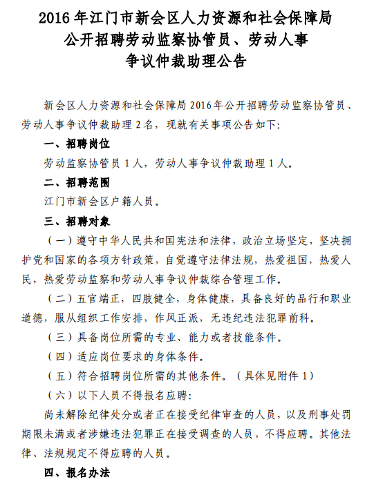 2016廣東江門市新會(huì)區(qū)人力資源和社會(huì)局招聘勞動(dòng)監(jiān)察協(xié)管員公告【招2人】