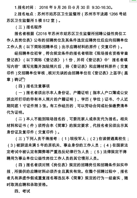 原標(biāo)題:2016年蘇州市姑蘇區(qū)衛(wèi)生監(jiān)督所公開招聘公益性崗位工作人員簡章