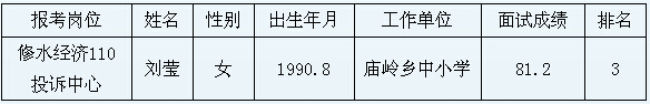 由于入闈修水縣經(jīng)濟發(fā)展服務(wù)聯(lián)動投訴中心工作人員(簡稱“修水經(jīng)濟110投訴中心”)張笠因個人原因提出申請放棄選調(diào)資格。現(xiàn)依據(jù)選調(diào)公告精神,遞補該選調(diào)崗位面試成績排名第三的劉瑩為入闈考察人員。