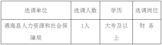 原標(biāo)題:2016年通海縣人力資源和社會(huì)局公開選調(diào)財(cái)務(wù)工作人員公告