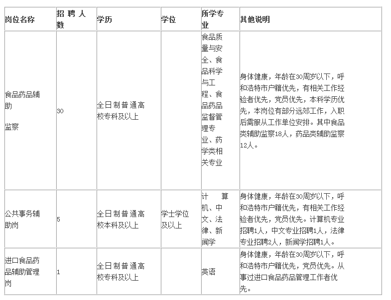 為公眾飲食用藥安全水平,更好的服務(wù)于食品醫(yī)藥經(jīng)濟平穩(wěn)較快發(fā)展,呼和浩特市賽罕區(qū)食品藥品監(jiān)督局全權(quán)委托內(nèi)蒙古聚英人力資源服務(wù)中心擬招聘36名勞務(wù)派遣人員,具體事宜如下: