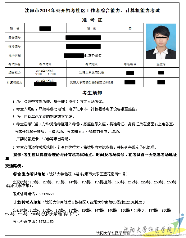 進入沈陽大學社區(qū)學院考試網(wǎng)首頁,選擇“信息查詢”輸入您注冊時姓名和身份證號,登陸后再選擇"打印準考證",打印本人本次考試準考證。