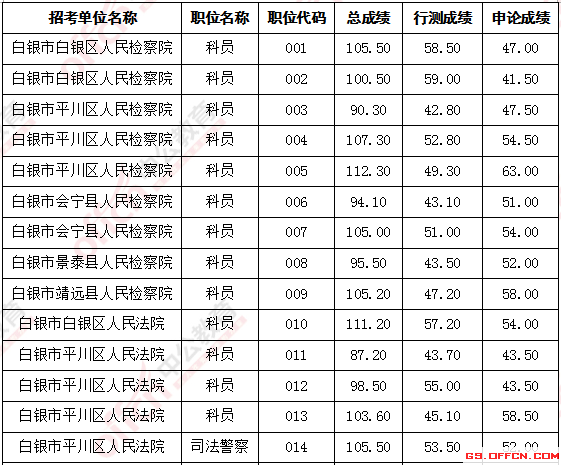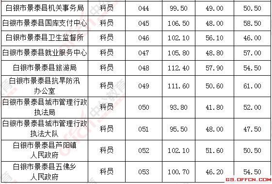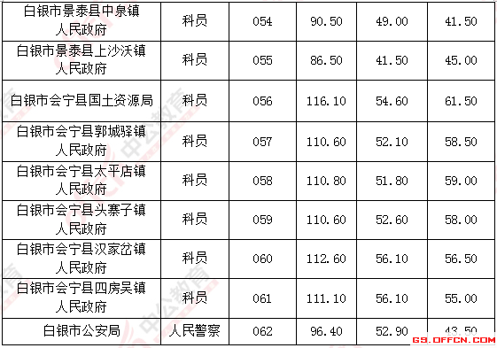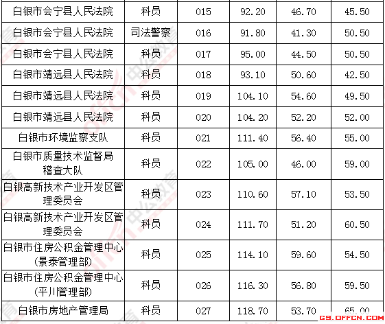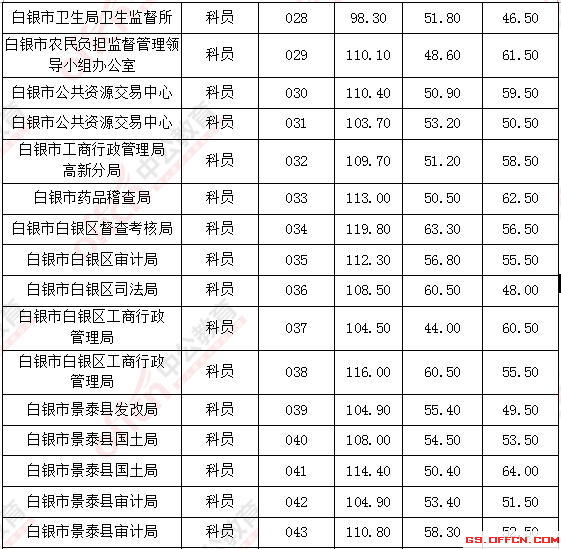 2017年甘肅白銀公務(wù)員面試入圍最低分?jǐn)?shù)線